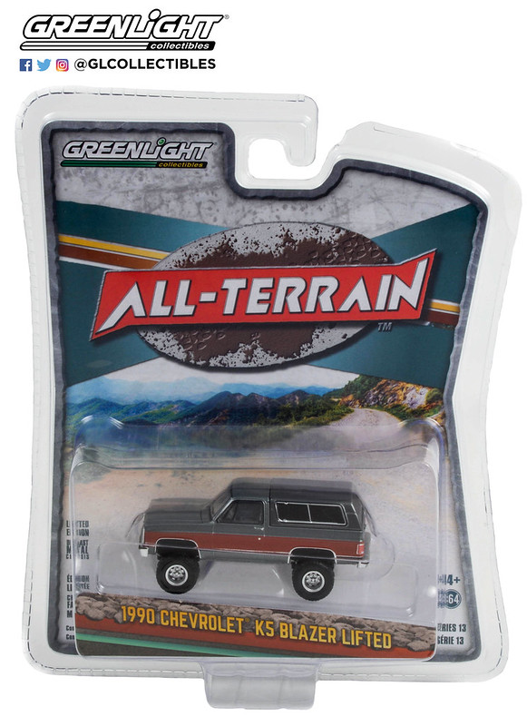 GreenLight – 1:64 – All-Terrain – Series 13 – 1990 Chevrolet K5 Blazer Lifted – Gray Metallic & Fire Red
