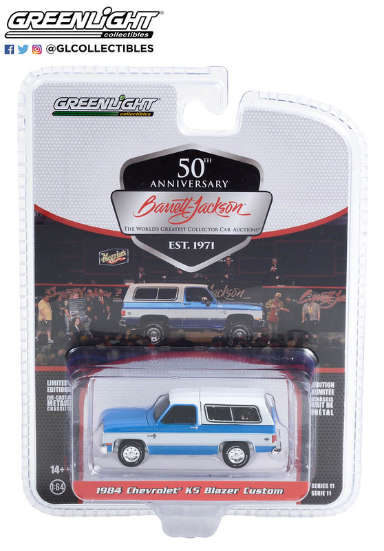 GreenLight – 1:64 – Barrett-Jackson ‘Scottsdale Edition’ – Series 11 – 1984 Chevrolet K5 Blazer Custom (Lot #534) – Blue and White