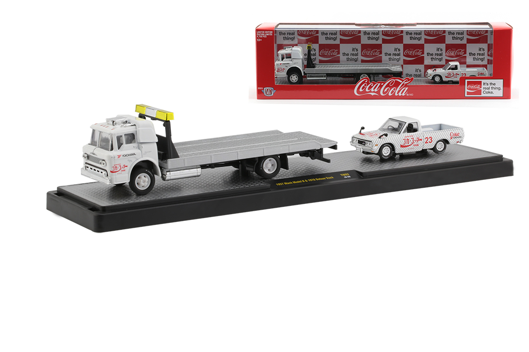 M2 – 1:64 – Auto-Haulers – Coca-Cola – Release TW02 – 1957 Mack Model N/1978 Datsun Truck (Coca-Cola)